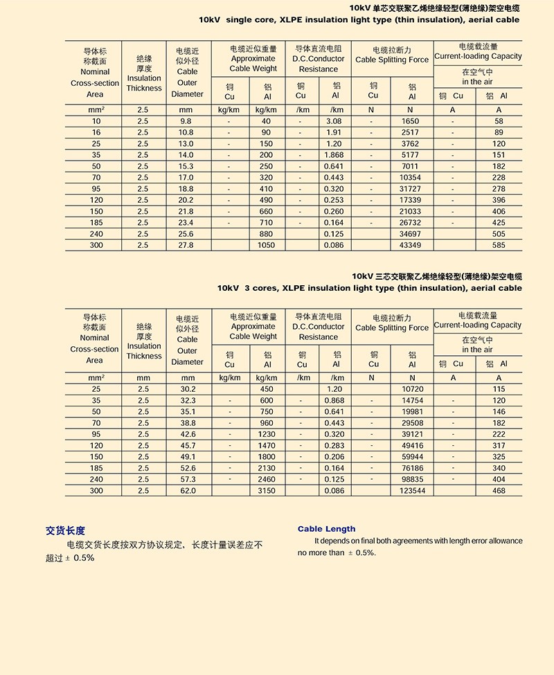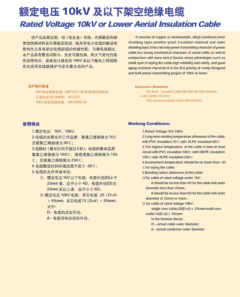 - 產品名稱:額定電壓10KV及以下架空絕緣電纜