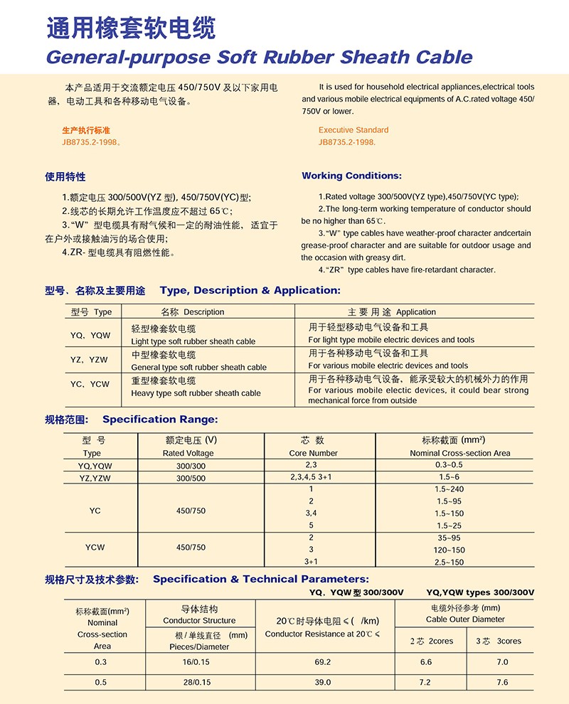 - 產品名稱:通用橡套軟電纜